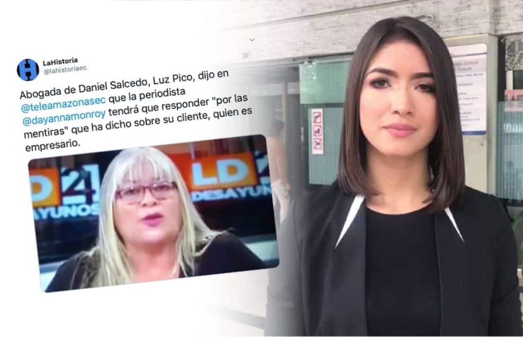 “La señorita o señora periodista Dayana Monroy ha dicho muchísimas mentiras que tendrá que, y con muchísimo respeto lo digo, responder por todo eso, porque Daniel Salcedo es un empresario que no ha participado en delito de peculado, tampoco ha participado en delito de lavado de activo y lo vamos a demostrar, tampoco en fraude procesal (...)”, mencionó Pico en el programa Los Desayunos de 24 Horas de Teleamazonas.