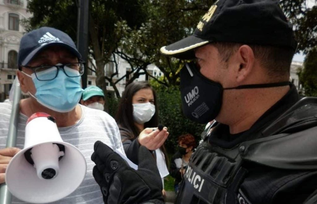 Minutos después, el coordinador y el equipo de prensa de Asfadec también fueron intimidados por policías. Los uniformados solicitaron “borrar” las fotografías registradas durante el plantón en la Plaza Grande. El hecho fue denunciado por Asfadec en sus redes sociales.