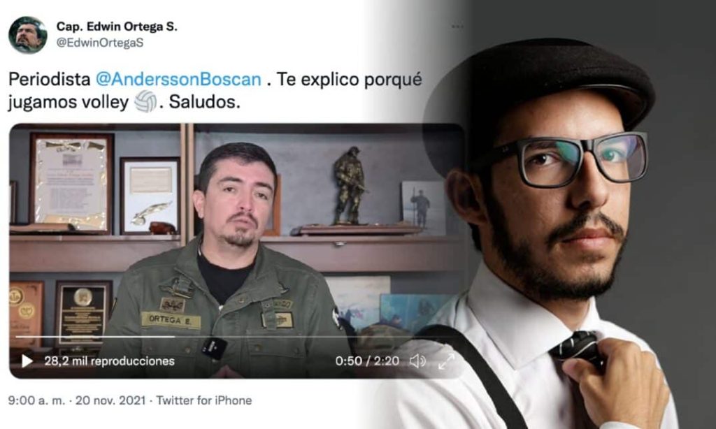 El pasado 20 de noviembre, el capitán en servicio pasivo, Edwin Ortega, utilizó su cuenta de Twitter para cuestionar la calidad del trabajo periodístico de Andersson Boscán, luego de que el fundador del medio La Posta opinara sobre la inacción de los militares frente a la violencia en la Penitenciaría del Litoral.
