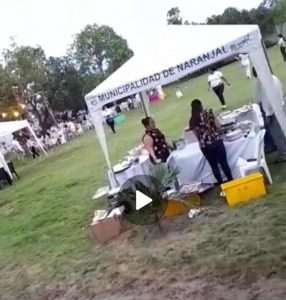 La denuncia N. 091101821050121 detalla que, el 23 de mayo de 2021, Darlyn S. fue invitado a animar la fiesta del Alcalde de Naranjal en el lugar de eventos ‘El Quijote’. Cuando llegó le llamó la atención que en la fiesta privada había carpas municipales, así como empleados municipales atendiendo a los invitados.