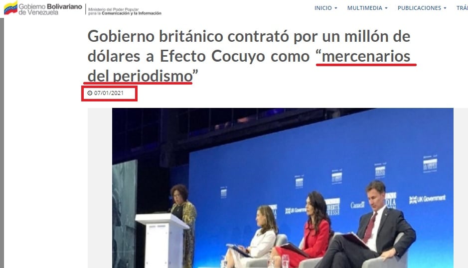 El 7 de enero de 2021, ya el Gobierno Nacional venezolano empezó a mover sus fichas y a través de los medios públicos acusaron al medio Efecto Cocuyo de “mercenarios del periodismo” por recibir financiamiento de entes británicos, pero aún no se conocen acciones legales contra tal medio o sus integrantes.