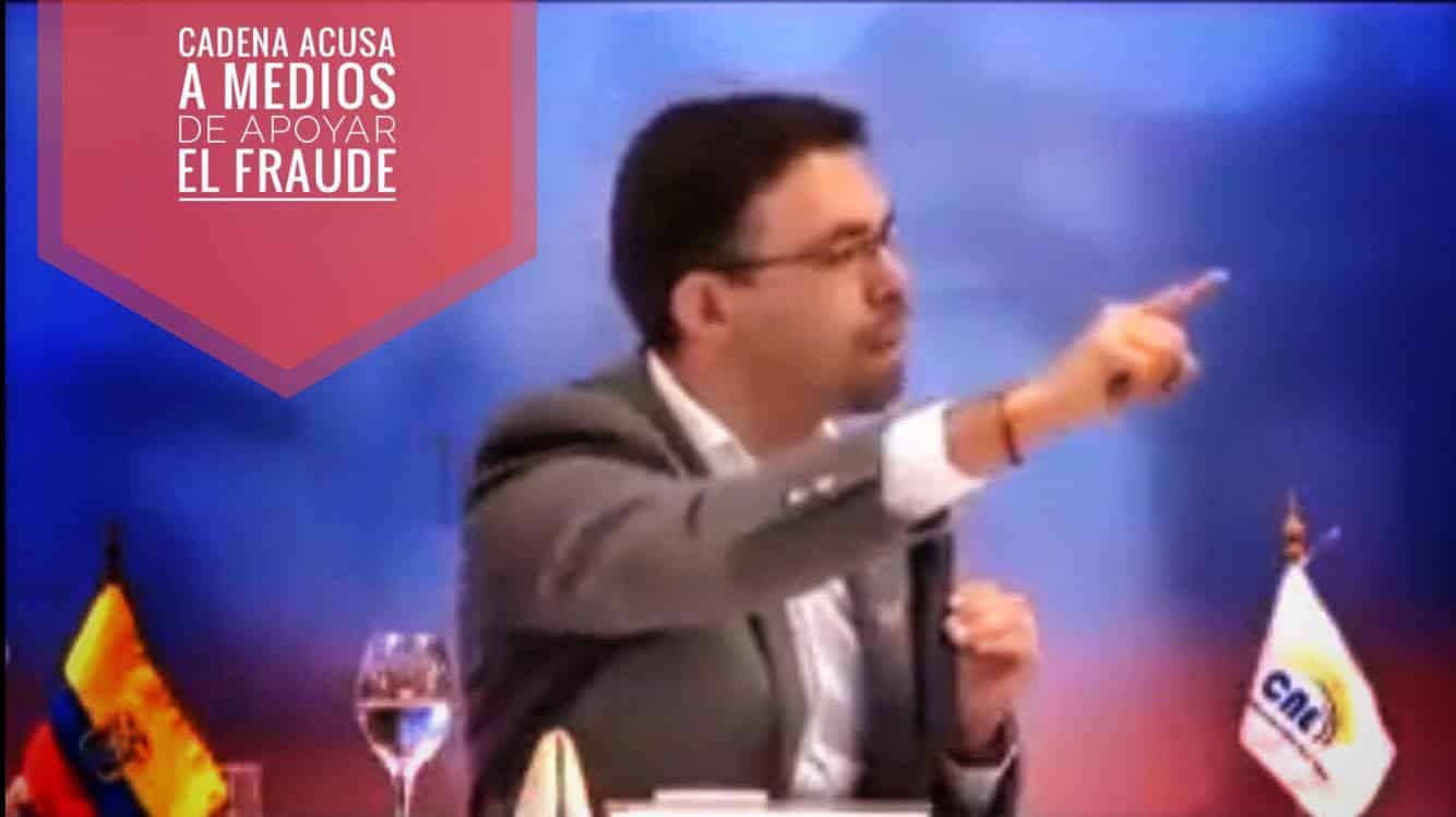 Una cadena nacional difundida en todos los medios de comunicación la noche del 5 y la mañana del 6 de abril de 2017 acusó a Cedatos de haber mentido en los resultados de las encuestas a boca de urna que dieron por ganador al candidato opositor Guillermo Lasso y cuestionó a la Corporación Participación Ciudadana por haber anunciado empate técnico y no haber dado por ganador al candidato oficialista.