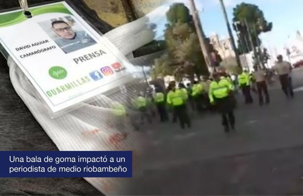 La tarde del 05 de octubre, David Aguiar, camarógrafo, de la página de Facebook Guarmillas, fue herido con una bala de goma en la parte superior derecha del toráx mientras cubría las manifestaciones en contra de las medidas económicas dictadas por el presidente Lenín Moreno, en Riobamba, al centro del país.