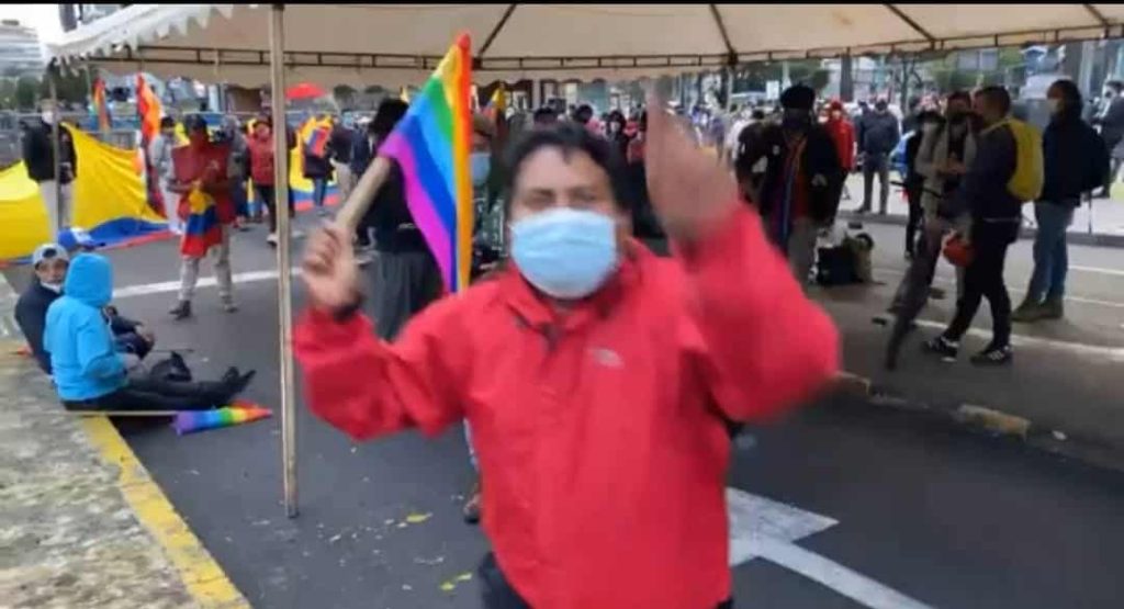 Ecuador, 10 de febrero de 2021. El periodista y cofundador del medio digital La Posta, Luis Eduardo Vivanco, fue desalojado de los exteriores del Consejo Nacional Electoral (CNE), mientras realizaba una cobertura en vivo del plantón en apoyo al candidato presidencial Yaku Pérez.