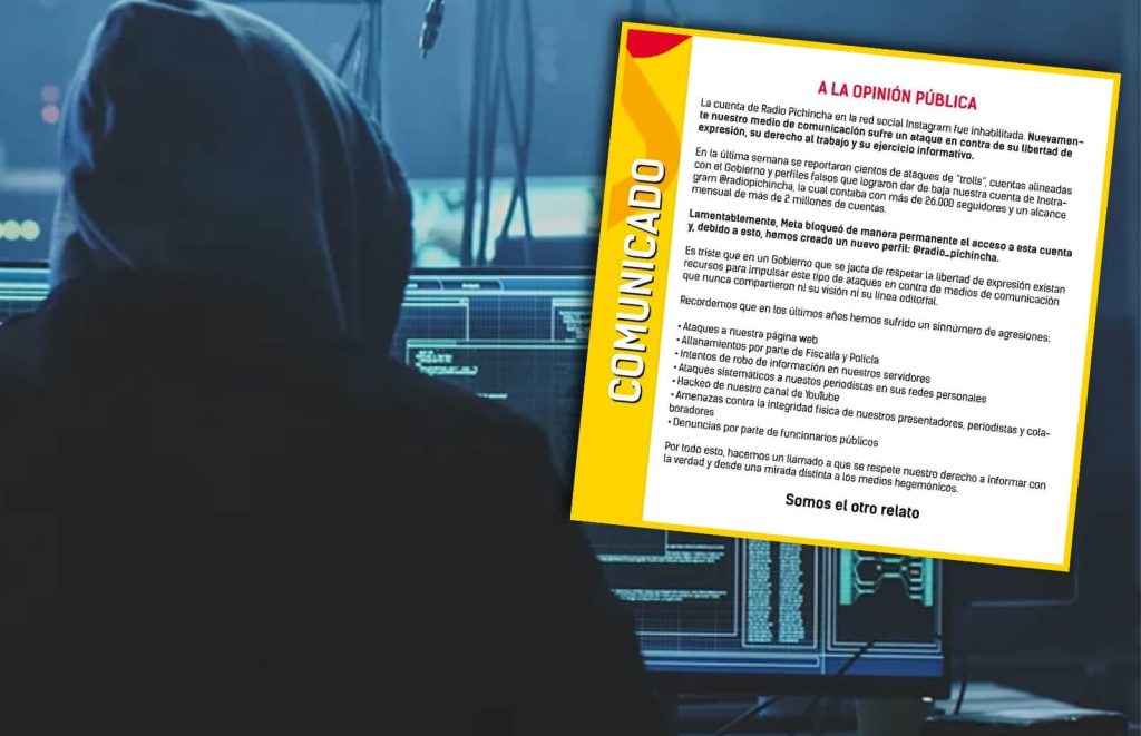Ecuador, 22 de noviembre de 2023.- Radio Pichincha, financiado y propiedad del gobierno local de la provincia de Pichincha, emitió un comunicado el pasado lunes informando que su perfil social en la red Instagram fue deshabilitado por Meta (empresa propietaria de Instagram) debido a infracciones a sus normas comunitarios aunque el medio lo atribuyo a una campaña sistemática de ataques en el espacio digital perpetrado por “trolls” afines al Gobierno.