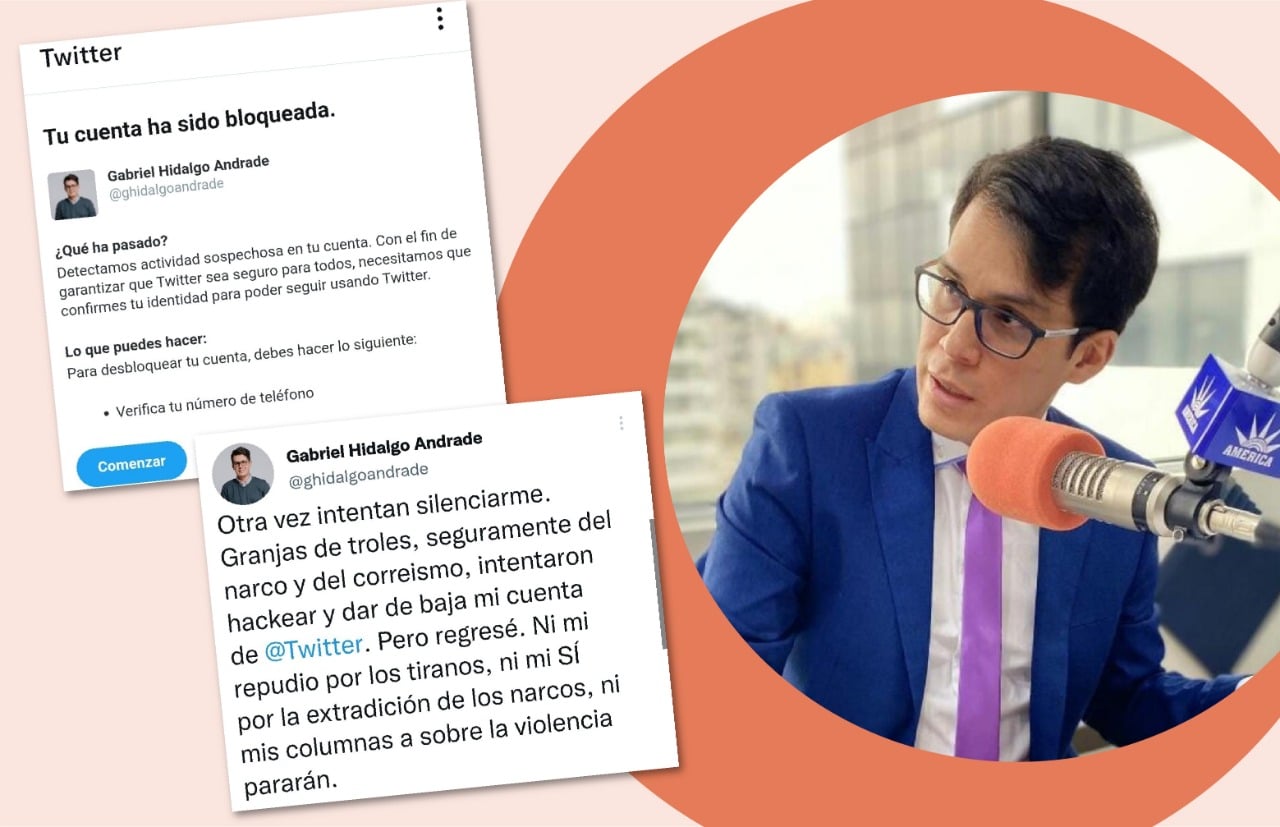 El columnista relaciona el intento de hackeo de su cuenta de Twitter con los mensajes que ha lanzado sobre la excarcelación del exvicepresidente Jorge Glass y la consulta popular propuesta por el Gobierno ecuatoriano. Lo califica, además, como un primer paso para atemorizar a las voces críticas. “A la sociedad civil la están atemorizando en las redes sociales y van a tratar de restarle valor y crédito”, señaló.