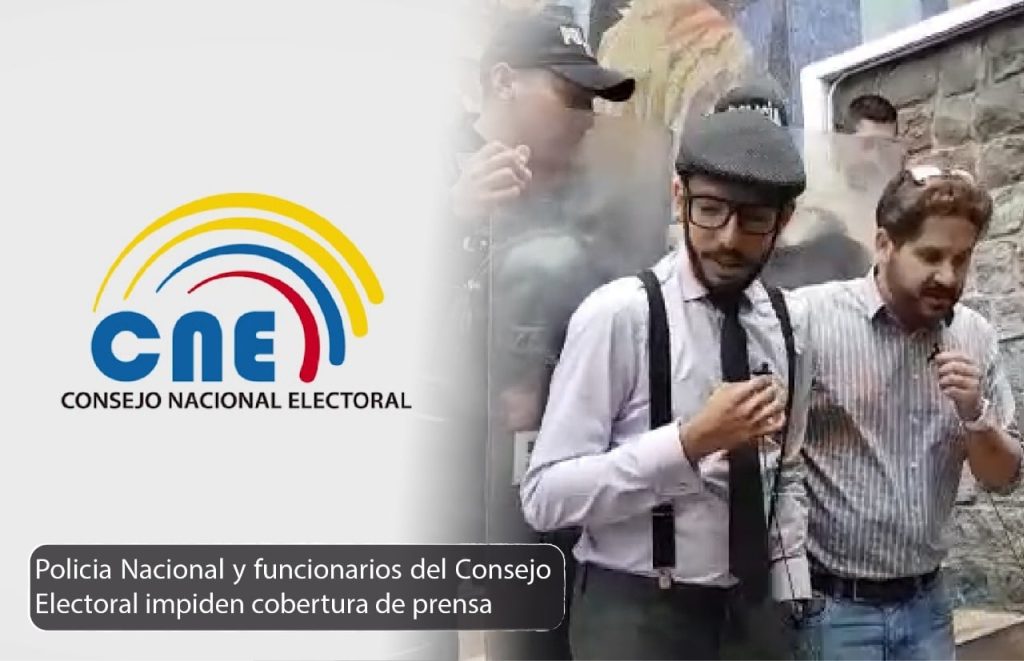“Al tratarse de un tema de interés público ingresamos al CNE para hacer la cobertura. El coronel Rolando Tapia ordenó a un grupo de policías, con atuendos antimotines y escudos, que nos desalojen a empujones de las instalaciones, mientras el Coronel se refería a nosotros como payasos, con una actitud absolutamente alevosa y hostil”, denunció Vivanco a FUNDAMEDIOS.