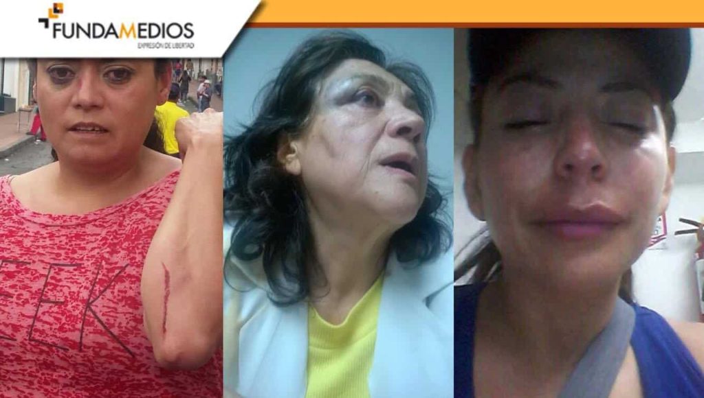Entre los nombres de los detenidos, se conoció que se encuentran activistas como: Johana Salazar, Elena Noboa, Carlos Jaime, Juan Carlos Tipán, Manuel Lucamo, John Plaza, entre otros. Además de estos detenidos, la activista Patricia Echeverría narró a Fundamedios que fue agredida físicamente y sufrió un intento de detención por haber acudido a la marcha junto a un grupo de mujeres activistas y sindicalistas. Según Echeverría, su agresión ocurrió cuando se puso de espaldas, en la primera línea de un cerco humano de policías, que se formó luego de que estos lanzaran gas lacrimógeno. Ella, para contrarrestar el gas, encendió un cigarrillo, cuando sintió que fue jalada por los uniformados, quienes la golpearon e intentaron llevársela detenida. Hecho que fue impedido ante el reclamo de sus compañeros. “Hubo forcejeos, me golpearon con toletazos en la espalda, riñones y estómago, también me dieron con el escudo en las piernas, brazo y cara con escudos”, apuntó Echeverría, quien tiene una incapacidad de tres días decretadas por el médico por las contusiones recibidas, sobretodo, en su rostro.
