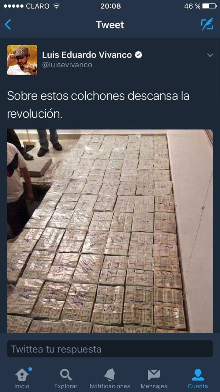 La acusación estaría vinculada a la publicación de un tuit del 13 de abril en su cuenta personal, donde comenta una fotografía de un operativo policial que encontró dinero oculto en la casa de un oficial de policía y otros acusados de lavado de activos. La investigación ya acumula 140 folios, pero Vivanco recién es notificado de la misma. En caso de llevarse adelante un proceso penal y de ser encontrado culpable, el periodista enfrentaría una pena de entre 6 meses y 3 años de prisión.