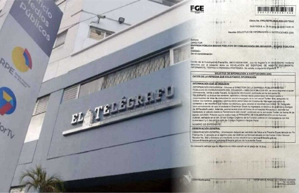 Ecuador, 05 de julio de 2022· La Fiscalía General de Ecuador solicitó a la Empresa Pública Medios Públicos de Comunicación del Ecuador —actualmente en liquidación— el nombre del equipo periodístico involucrado en la redacción, aprobación y difusión de un mensaje en Twitter a través del cual se informó sobre un ciudadano que ingresaba al sistema de víctimas y testigos de la Fiscalía.