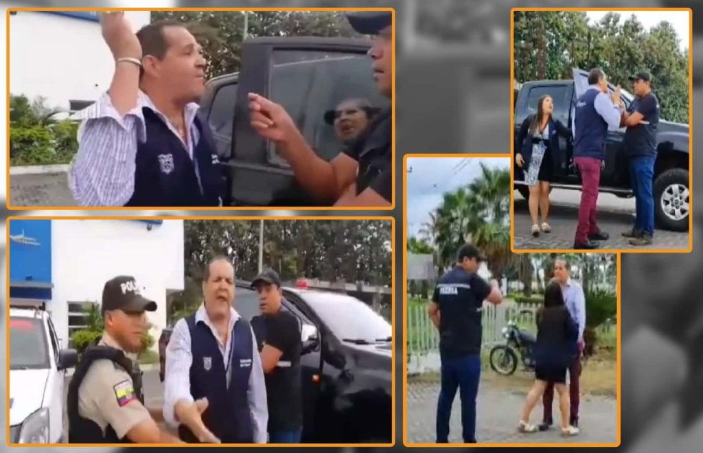 Ecuador, 04 de julio de 2023.- Al consultarle a Rolando Gaete, jefe político del cantón Marcelino Maridueña, en la provincia de Guayas, sobre los operativos policiales, él, de forma prepotente, le arrancó el micrófono al periodista y propietario de Quality TV, Daniel Pumayugra. Todo esto, en medio de gritos e insultos al periodista. Incluso, quiso golpearlo, pero lo detuvieron.