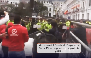Este lunes 3 de diciembre, según se conoció a través de un video difundido en redes sociales, miembros del Comité de Empresa de GamaTV denunciaron haber sido reprimidos y agredidos mientras protestaban frente al Palacio de Carondelet, en Quito. El gremio de trabajadores del medio de comunicación, incautado en julio de 2008 por el gobierno de Rafael Correa, se auto convocó para hacer escuchar su molestia luego de no recibir, durante cuatro meses consecutivos, sus salarios.