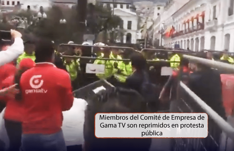 Este lunes 3 de diciembre, según se conoció a través de un video difundido en redes sociales, miembros del Comité de Empresa de GamaTV denunciaron haber sido reprimidos y agredidos mientras protestaban frente al Palacio de Carondelet, en Quito. El gremio de trabajadores del medio de comunicación, incautado en julio de 2008 por el gobierno de Rafael Correa, se auto convocó para hacer escuchar su molestia luego de no recibir, durante cuatro meses consecutivos, sus salarios.