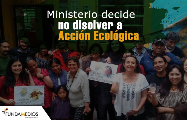 ACTUALIZACIÓN. Luego del proceso de disolución iniciado en contra de la organización Corporación Acción Ecológica, el Ministerio del Ambiente decidió este 12 de enero de 2017 dar marcha atrás y desestimar la solicitud de disolución pedida por el Ministerio del Interior, el cual consideró que, pronunciamientos hechos en redes sociales en rechazo a la extracción minera en Morona Santiago, atentan contra la seguridad interna del Estado y afecta la paz pública.