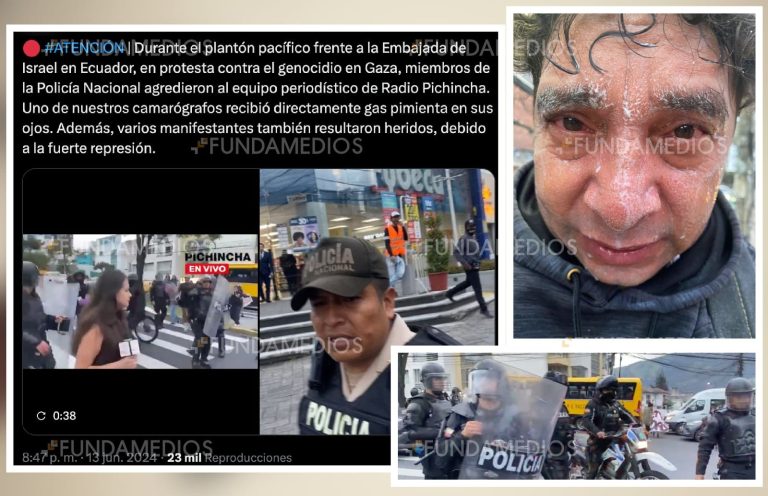 Policía lanza gas pimienta a equipo periodístico mientras cubría un plantón por Palestina
