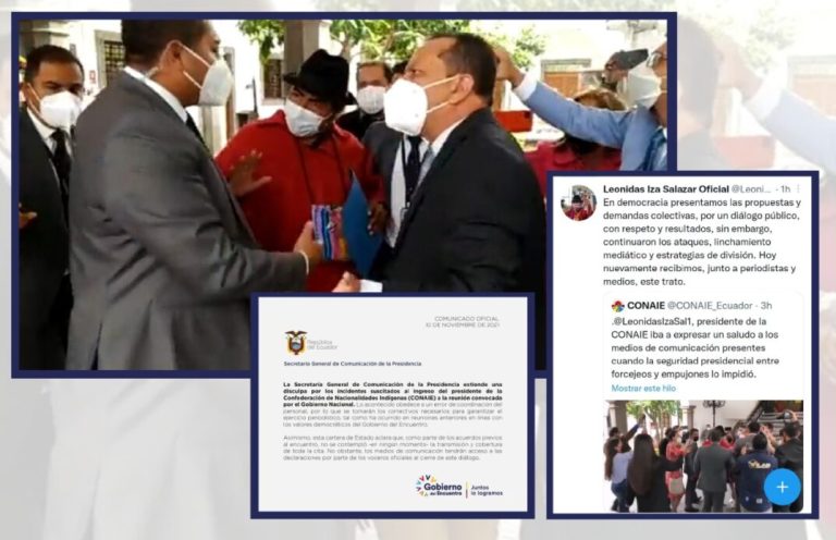 Actualización: Carondelet y Leonidas Iza reaccionan ante agresión de cuerpo de Seguridad Presidencial a periodistas