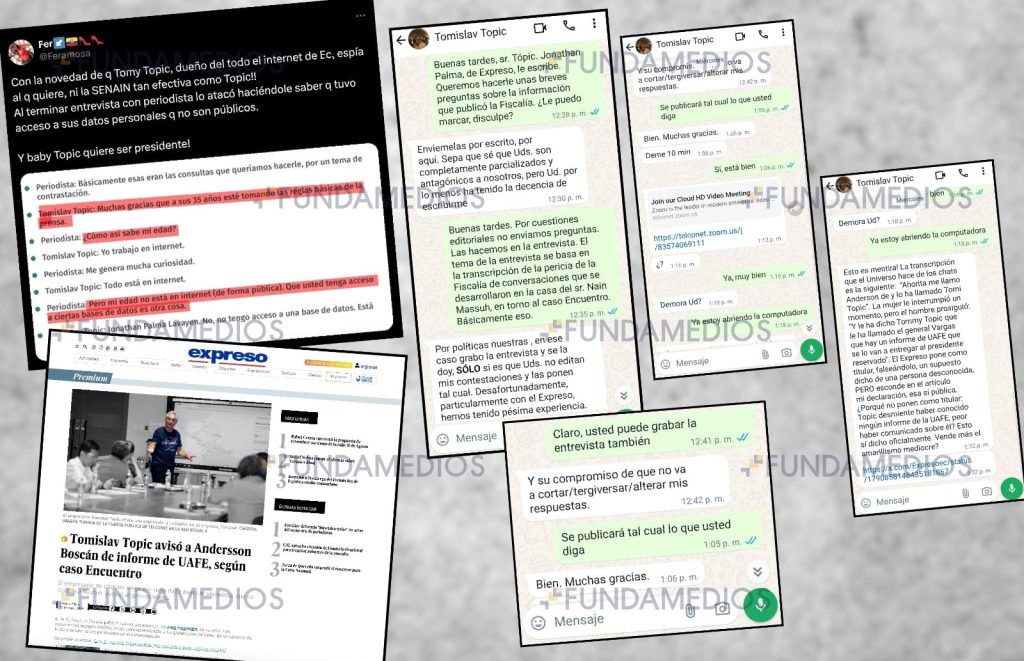 Fundamedios se comunicó con Topic para conocer su versión del hecho. “Lo que ocurrió está narrado en la entrevista. Le dije al señor periodista que estaba bien que, a pesar de tener 35 años, tenga la decencia de contrastar la información. Expreso decidió, posteriormente, sacar de todos modos un titular tendencioso, falso y amarillista”, comentó Topic.