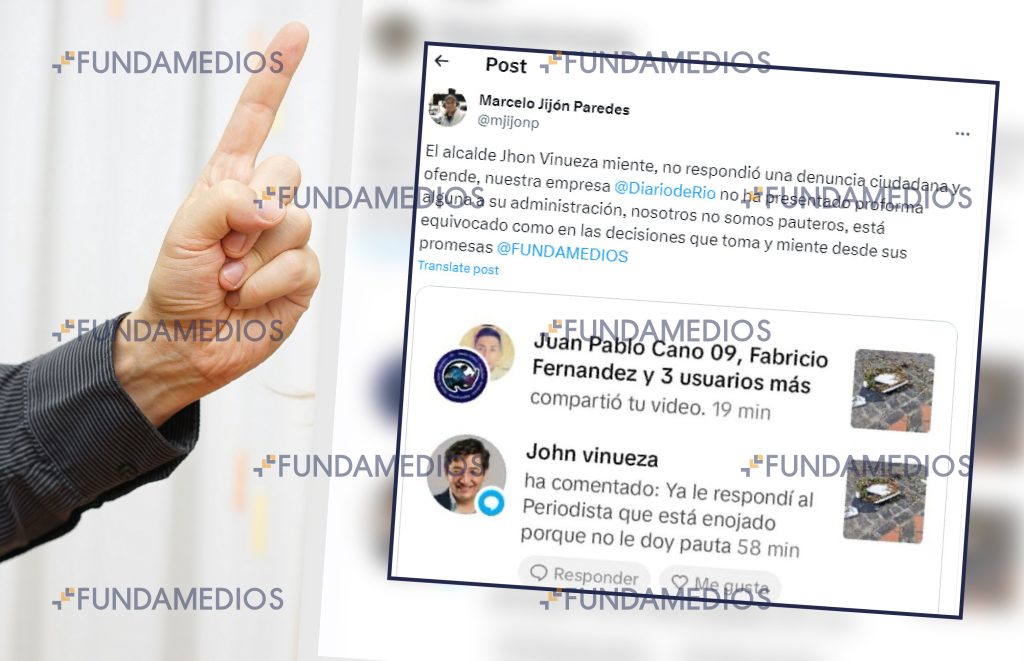 Hasta el cierre de esta alerta, el alcalde Vinueza no respondió a un pedido de comunicación cursado por Fundamedios a su equipo de prensa.
