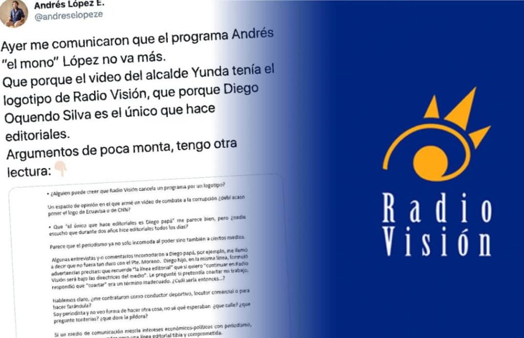 Oquendo reconoció a Fundamedios que el programa ya no será emitido y que la difusión del video “fue la gota que derramó el vaso”. Negó que se trata de una censura. “Andrés jamás se sujetó a las directrices editoriales. Por ejemplo, que un invitado no puede repetirse en la misma semana. En el tema musical, cuando no tenía contenidos, ponía música que no correspondía a la programación de radio Visión, se salía de la programación musical (...) Si llegábamos a un acuerdo A, él hacía Z, así fueron dos años”, explicó.