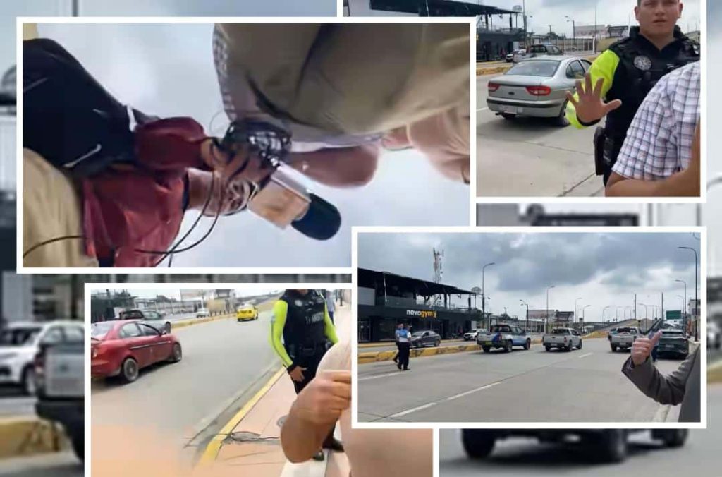 Este individuo se acercó de nuevo al periodista y, esta vez de forma violenta, lo increpó y vociferó: “Deja mi vehículo en paz”. Calvache respondió que estaba grabando en la vía pública, pero esta persona golpeó el celular y lo botó al suelo, como se ve en el video grabado de la cobertura. La transmisión continúa y se observa que el periodista recoge el celular del suelo. Una mujer se acerca y señala que está “invadiendo” su “privacidad”; luego volvió a lanzar el celular al suelo. Un agente de tránsito se acercó e intentó calmar la situación, pero le sugirió al periodista que dejara de grabar porque se trata de autos privados. “Los bienes de los señores son privados”, se escucha al agente de tránsito en la transmisión. El periodista insistió que estaba en la vía pública y tenía derecho a cubrir lo que sucedía.