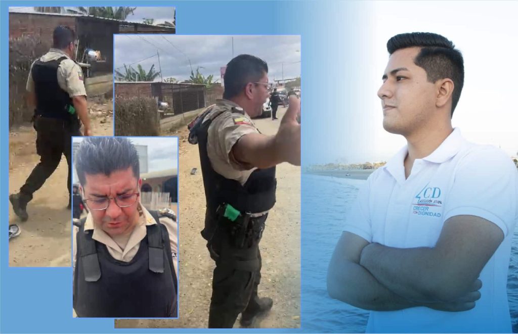 Ecuador, 31 de octubre de 2023.- Este domingo en la mañana, el reportero José Suárez, del medio Triple Vía Digital Manta, fue agredido por un miembro de la Policía Nacional mientras realizaba una transmisión en vivo. En el video se observa que mientras grababa la escena y señalaba que se encontraba en Montecristi, un servidor policial le pidió retirarse del lugar.