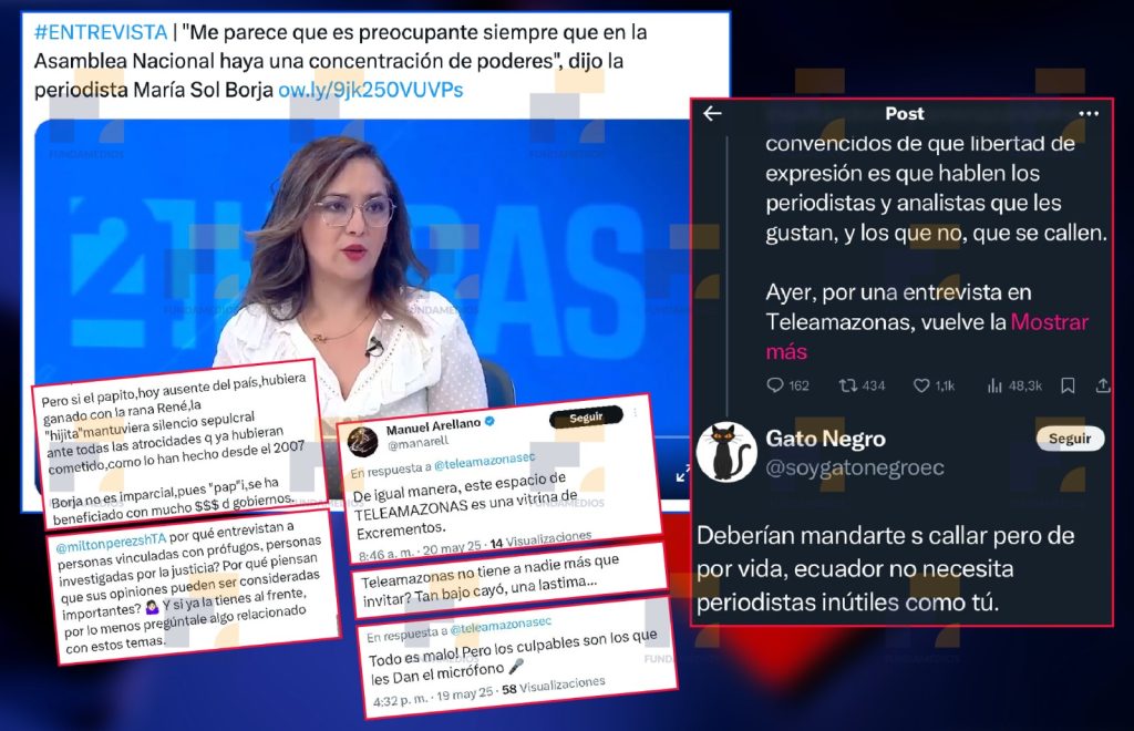 En conversación con Milton Pérez, Borja indicó: “ A mí me parece que es preocupante siempre que en la Asamblea Nacional haya una concentración de poderes”. Esto generó una ola de insultos violentos en contra de la periodista.