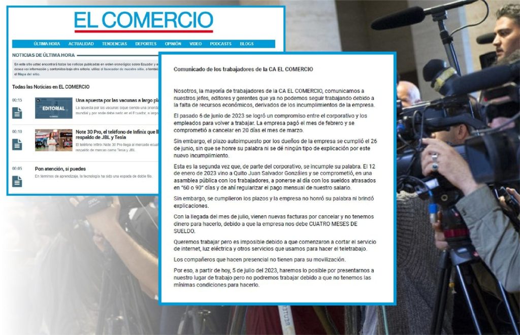 En junio de 2023, Fundamedios reportó que El Comercio despidió de forma simultánea a varios trabajadores de diferentes áreas: alrededor de 50 personas de su equipo de producción, 20 del equipo de distribución, y 30 de distintas unidades; entre ellas, se encontraban 10 periodistas. Al momento, se logró un acuerdo con los trabajadores que permanecieron contratados, y se fijaron fechas de pago de obligaciones pendientes de los últimos cuatro meses, que, según indican en el comunicado, siguen impagos. El 26 de junio habría vencido la fecha de cumplimiento del acuerdo, y el Medio no habría dado ninguna explicación de sus trabajadores sobre la persistencia del incumplimiento.