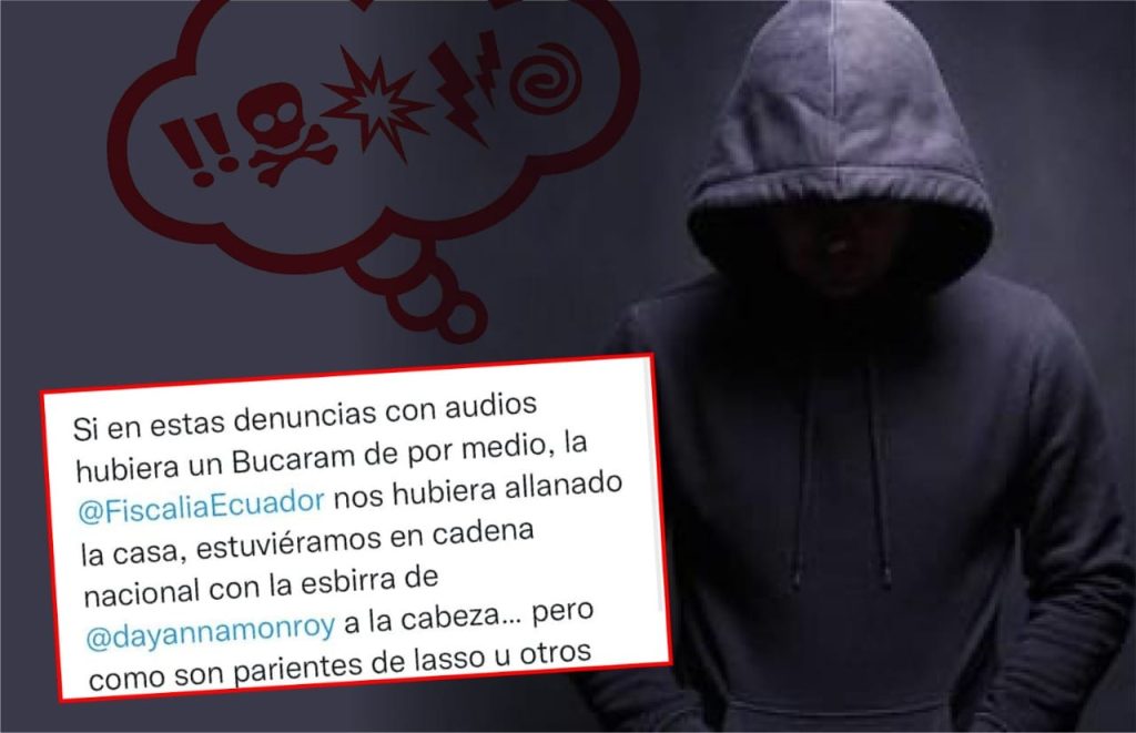 Ecuador, 11 de enero de 2023· La periodista ecuatoriana Dayanna Monroy volvió a ser acosada por el político ecuatoriano Jacobo Bucaram, investigado por la Fiscalía por comercialización irregular de insumos médicos al Hospital del Instituto Ecuatoriano de Seguridad Social (IESS), de Guayaquil. En las últimas horas la reportera recibió varios mensajes en Twitter, a través de los cuales se cuestionó su profesionalismo con insultos misóginos y machistas.