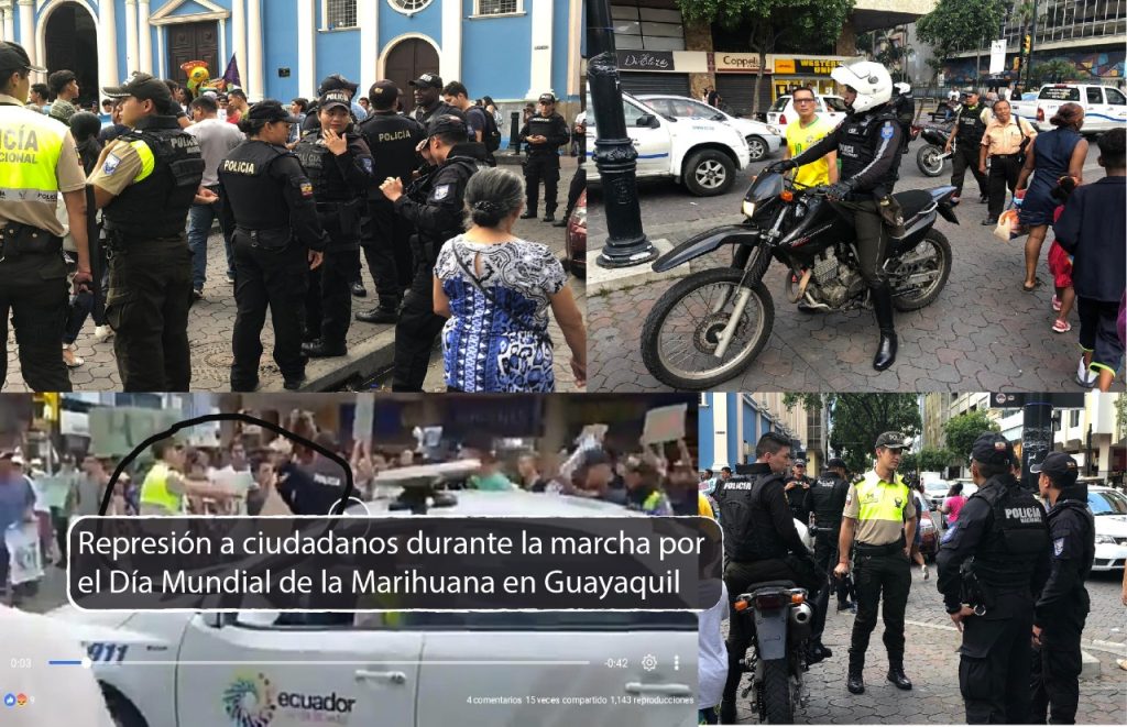 Reportes de agresiones y detenciones, sin base legal, fueron el saldo que dejó la marcha por el Día Mundial de la Marihuana, realizada el sábado 4 de mayo, en Guayaquil (sur de Ecuador). Diana Maldonado, asistente y parte de la organización de la manifestación, denunció a FUNDAMEDIOS que miembros de una de las nueve comisarías de Guayas intentaron evitar que la jornada se lleve a cabo, a pesar de contar con los permisos y comunicados tramitados.