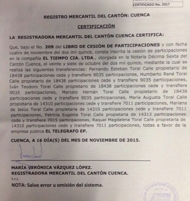 REGISTRO MERCANTIL EL TIEMPO por Contenidos | Nov 24, 2015 | 0 Comentarios Enviar comentarioLo siento, debes estar conectado para publicar un comentario.