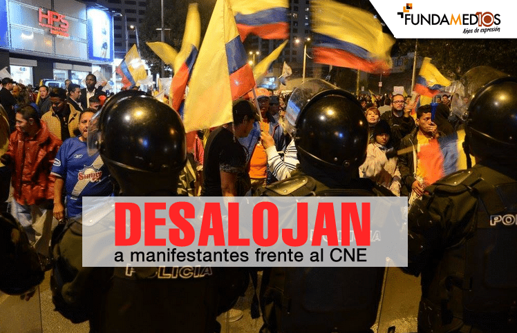 En un operativo ocurrido en la madrugada de este martes 11 de abril del 2017, la Policía Nacional desalojó a las personas que permanecían, en vigilia, en las inmediaciones del Consejo Nacional Electoral (CNE), al norte de Quito.