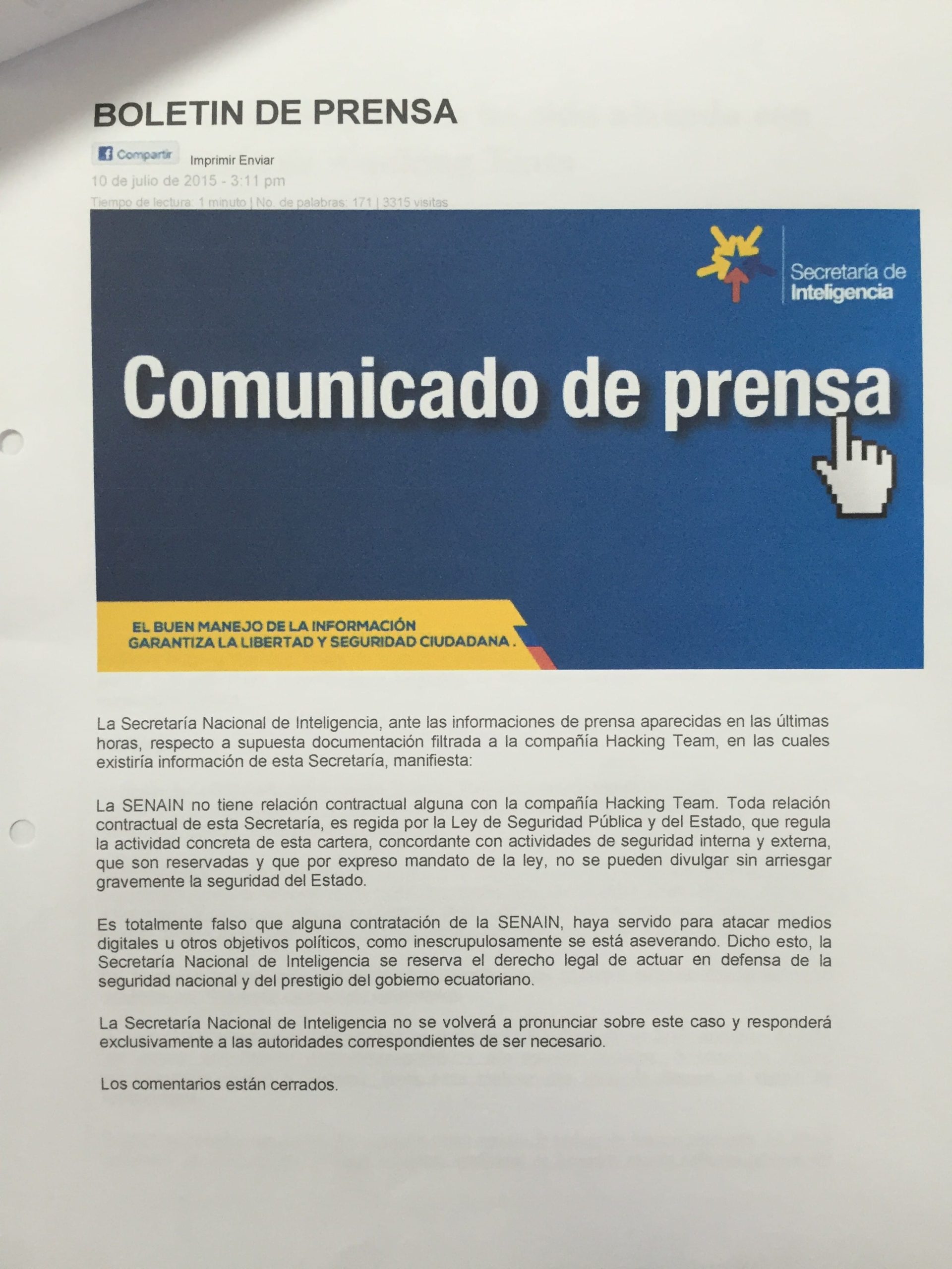 Comunicado de prensa Sec Nacional Inteligencia por Pablo Terán | Feb 18, 2016 | 0 Comentarios Enviar comentarioLo siento, debes estar conectado para publicar un comentario.