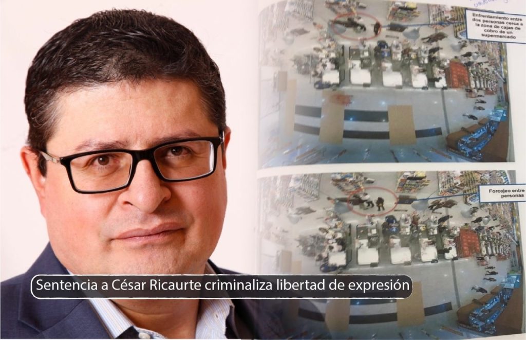 Este jueves, 27 de junio, los jueces Patlova Guerra, Paulina Grijalva y Henry Cáliz, integrantes del Tribunal de la Corte Provincial de Pichincha, dictaron una resolución que establece 15 días de prisión para el director de FUNDAMEDIOS, César Ricaurte. Lo acusan por emitir una opinión en contra de Jorge Jurado, exembajador de Rafael Correa en Alemania y por, supuestamente, iniciar un enfrentamiento con él, provocando una caída que le causó lesiones.
