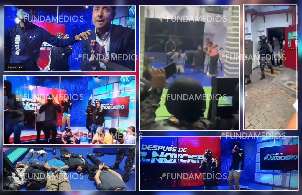 Ecuador, 09 de enero de 2024· Ecuador vivió uno de los momentos más críticos para la libertad de prensa. Las instalaciones de los canales TC Televisión y Gamavisión —de alcance nacional— fueron interrumpidas por integrantes de una banda delictiva en la ciudad de Guayaquil. En plena transmisión en vivo personajes armados golpearon y secuestraron a los trabajadores del canal.