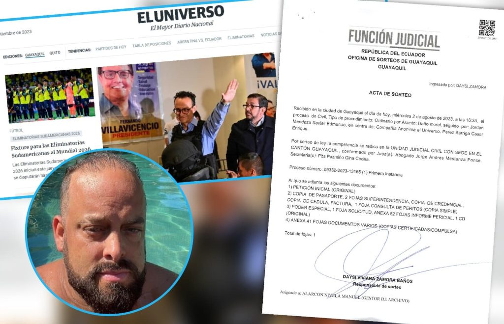 Ecuador, 07 de septiembre de 2023.- Xavier Jordán, investigado por tráfico de influencias y corrupción, inició su cuarto proceso judicial en contra de periodistas y medios de comunicación. Esta vez, demandó, bajo su tradicional modus operandi, al diario “El Universo”, por “daño moral”. La demanda fue presentada en su nombre el pasado 02 de agosto, en la Unidad Judicial Civil, con sede en el cantón de Guayaquil.