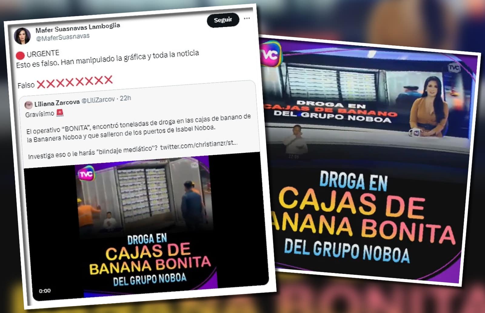 Por su parte, la nota de la usuaria de Twitter se titula “Droga en cajas de banano del grupo Noboa”, y señala que “[…] [e]l operativo ‘Bonita’ encontró toneladas de droga en las cajas de banano de la Bananera Noboa y que salieron de los puertos de Isabel Noboa”.