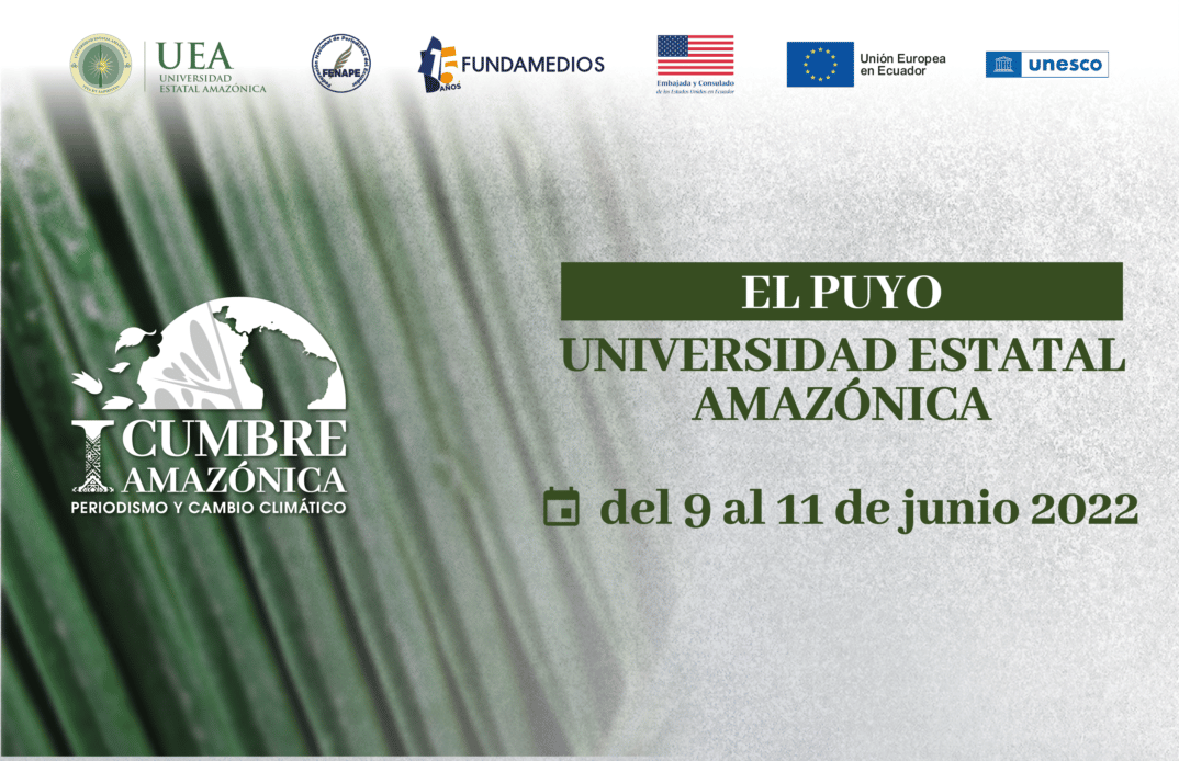 Llega a Ecuador la ‘I Cumbre Amazónica de Periodismo y Cambio Climático 2022’, que se realizará entre el 09 y 11 de junio de este año, en la Universidad Estatal Amazónica, en Puyo.