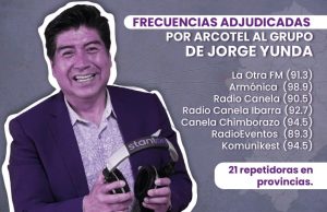 En el caso del alcalde de Quito Jorge Yunda es similar. Desde Fundamedios alertamos que a través de un esquema de entrega de acciones de las radios a familiares y amigos cercanos, prácticamente, Yunda logró mantener un control sobre ocho frecuencias que entraron a concurso, sin ser señalado por concentración.