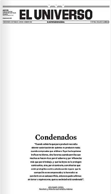 - El 22 de julio de 2011, las páginas de opinión de los diarios El Comercio y diario Hoy salieron casi en blanco, o con letras muy tenues que impedían su lectura, como una medida de apoyo a El Universo y rechazo a la sentencia desfavorable. Así, diario Hoy en sus dos páginas y El Comercio en una, se unieron en un acto inédito nunca antes ocurrido en Ecuador.