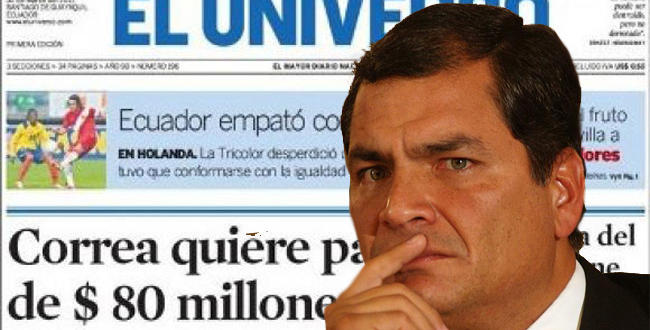 - El 16 de febrero de 2012 la Sala de lo Penal de la recientemente reformada Corte Nacional de Justicia ratificó, en casación, la condena de tres años de prisión y el pago de $40 millones de dólares, por injuriar al Presidente, en contra de los directivos y exeditorialista de El Universo