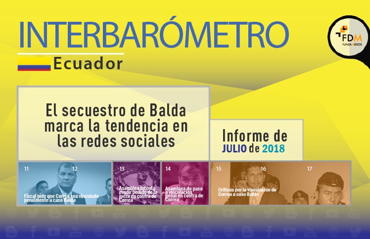 La polarización política se mantiene en niveles altos. Esto se debe a que la conversación gira nuevamente alrededor del expresidente Rafael Correa y el mandatario Lenín Moreno, quienes controlan la coyuntura nacional en las redes sociales. Solo entre los dos alcanzan más del 60% de menciones. Sin embargo, hay que precisar que Correa acapara el escenario político, tras los problemas que enfrenta con la justicia al ser vinculado al secuestro del exlegislador Fernando Balda. Esta es la situación política que reflejó el INTERBARÓMETRO Ecuador de julio.