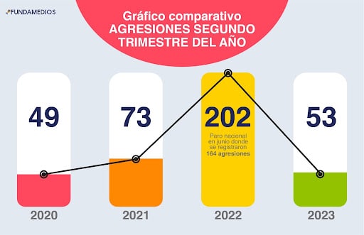 En suma estos primeros seis meses del año se han registrado 133 ataques contra la prensa, de los cuales 53 pertenecen al segundo trimestre del año, entre abril y junio.