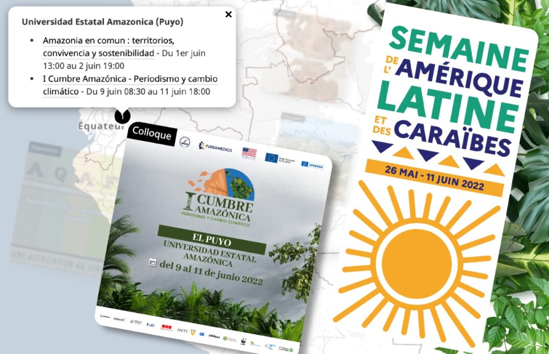 La Cumbre Amazónica de Periodismo y Cambio Climático 2022 fue incluida en la agenda oficial de la novena edición de la Semana de América Latina y el Caribe, que es organizada por el Gobierno de Francia, pero se realiza en todos los países de la región, del 26 de mayo al 11 de junio. La Cumbre será parte, así, de los casi 600 eventos culturales, científicos, políticos, económicos y festivos organizados para este capítulo.