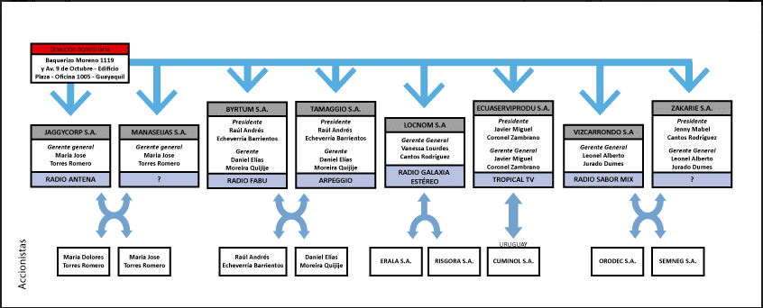 En vista de que el monopolio está prohibido en Ecuador y es supuestamente uno de los temas que se vigilarían en este concurso de frecuencias, se elaboró una estrategia que puede ser identificada al revisar la información de estas ocho empresas en la Superintendencia de Compañías.