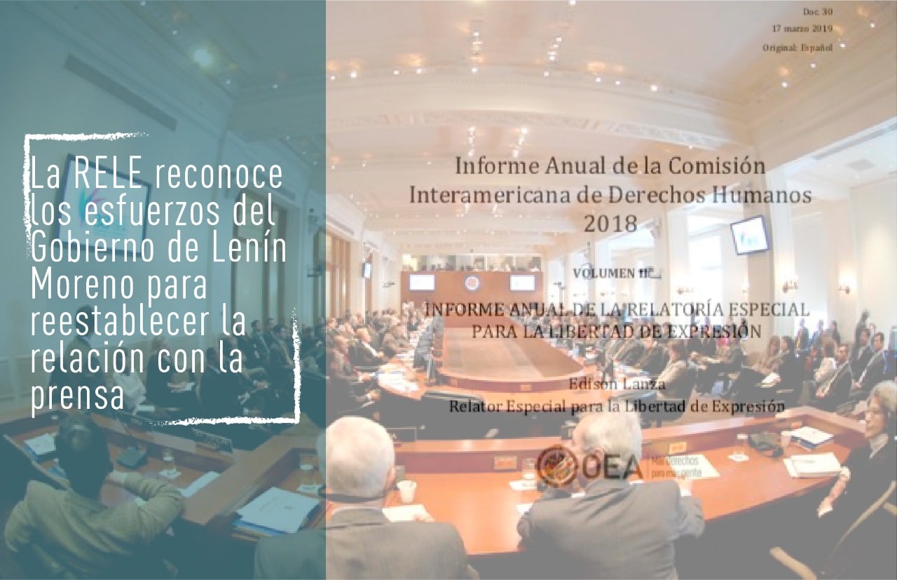 En agosto de 2018, la Relatoría Especial para la Libertad de Expresión (RELE) de la CIDH hizo una visita oficial a Ecuador para evaluar la situación de la libertad de expresión. Como parte del proceso de normalización de las relaciones del Estado con la sociedad civil, medios de comunicación, periodistas y organismos internacionales, el Presidente de la República extendió dicha invitación.