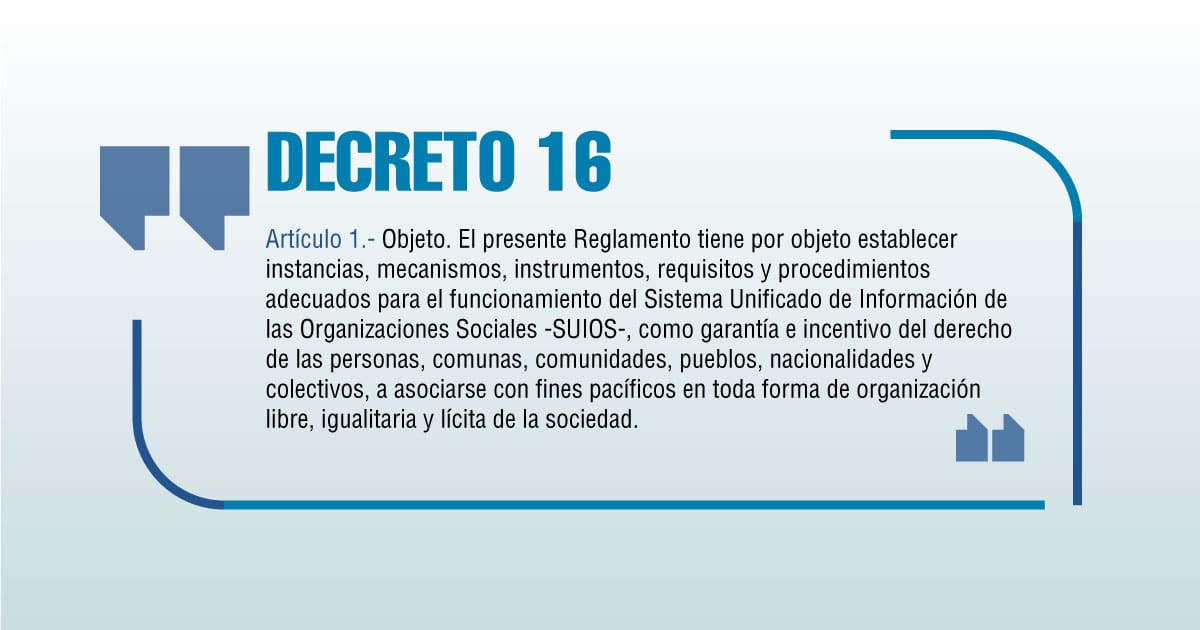 “La funcionalidad del SUIOS era importante en el Decreto 16, pero con el 739 le quitaron importancia al sistema. Antes era requisito que las organizaciones se registren en él, pero por las complicaciones que hubo, en una reunión se llegó a un acuerdo en el que cada ministerio se comprometía a subir en el sistema la información de las organizaciones que se registren en cada entidad”, explicó.