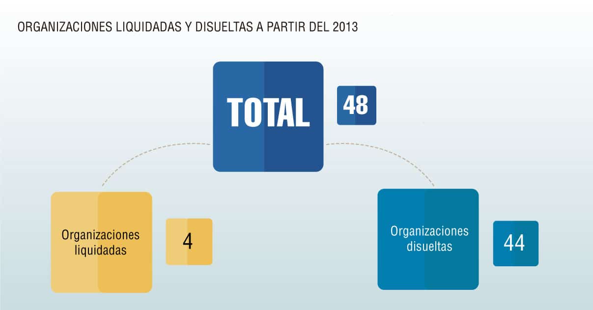 Cuarenta y ocho organizaciones disueltas por ahora no suena a mucho, más si la mayoría serían disoluciones voluntarias (40), según los acuerdos ministeriales que adjuntó la Secretaría Nacional de Gestión de la Política. De las cuatro restantes no se conoce la causa de disolución pues “no se dispone el acuerdo ministerial en razón de que el ministerio o secretaría correspondiente actualizó el estado jurídico a disuelta”, según el oficio enviado por dicha cartera.