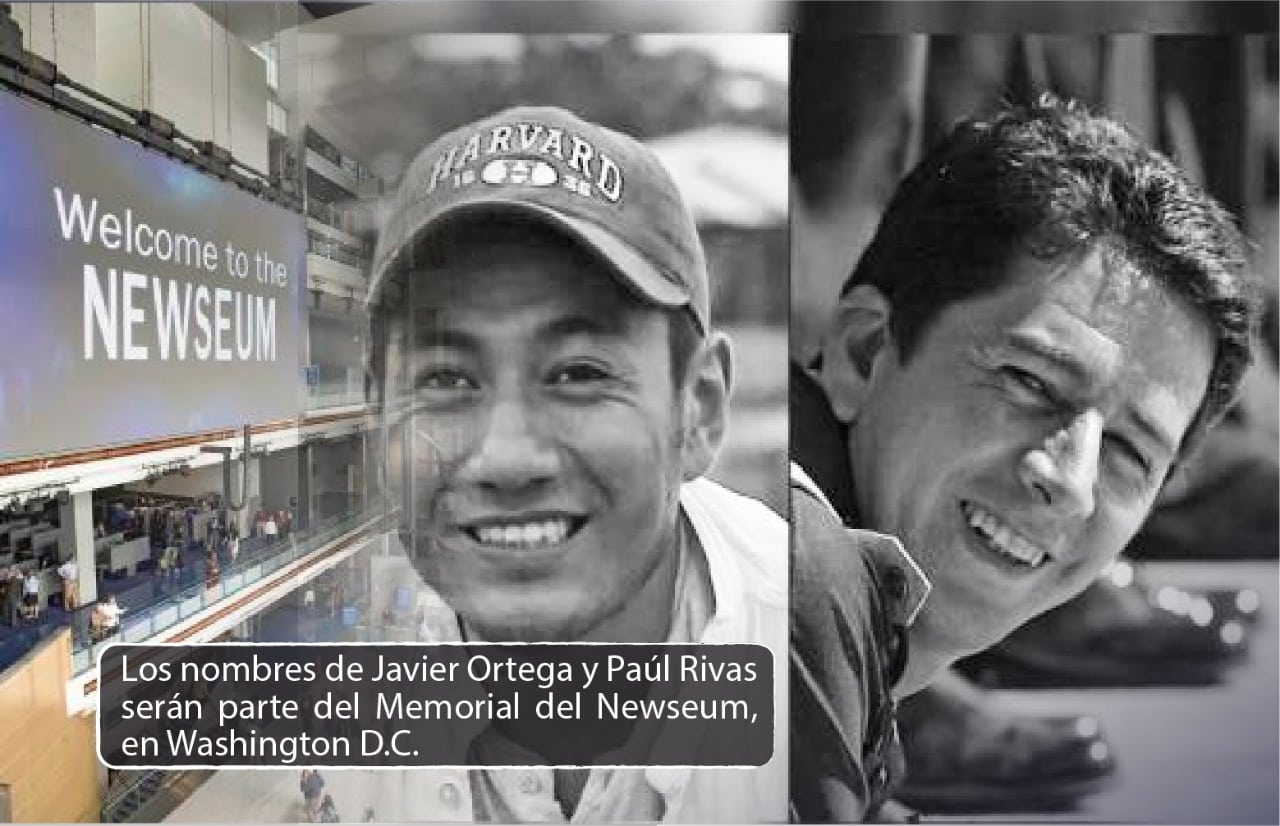 Los nombres del periodista Javier Ortega y del fotógrafo Paúl Rivas se agregarán a la muestra del Newseum: el rincón más importante de la memoria histórica en lo que refiere a periodismo y medios de comunicación. El Museo de las Noticias, ubicado en Washington D.C (EE.UU.), es un espacio interactivo que promueve la libertad de prensa.