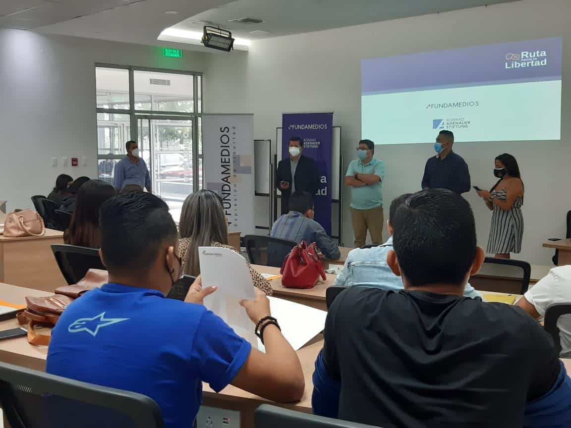 Ecuador, 16 de noviembre de 2021. En Portoviejo se realizó el octavo ciclo de talleres denominado “Ruta Hacia la Libertad”, organizado por FUNDAMEDIOS y la Fundación Konrad Adenauer, oficina en Ecuador.  Para la organización de estos talleres se contó con el apoyo del grupo de Medios EDIASA, que incluye a El Diario Manabita y a Manavisión y la Universidad San Gregorio, con su Escuela de Ciencias de la Comunicación.
