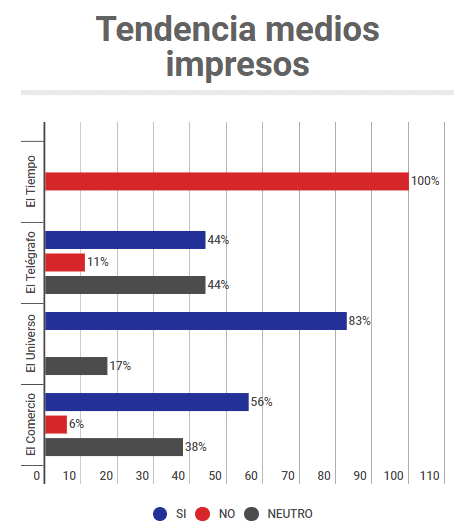 Se monitoreo 6 medios nacionales y un total de 2 272 minutos de espacios informativos de radio y TV y apenas para examinar, debatir y tratar los temas de la consulta se dedicó 375 minutos. En otras palabras, apenas el 16,5 % de todo el tiempo de informativos y entrevistas se utilizó para hablar de la Consulta Popular. Un inicio de campaña frío y distante desde lo mediático.